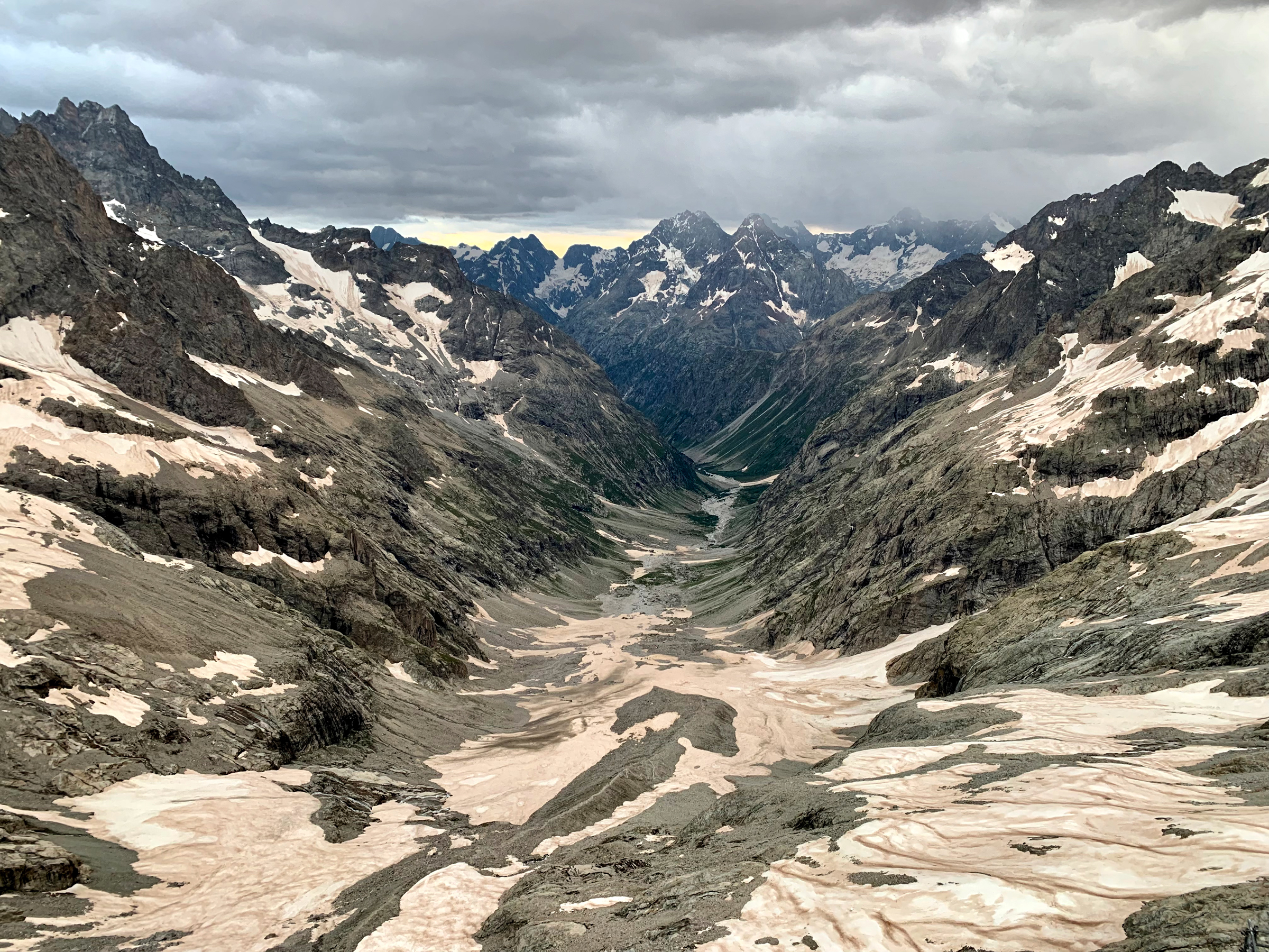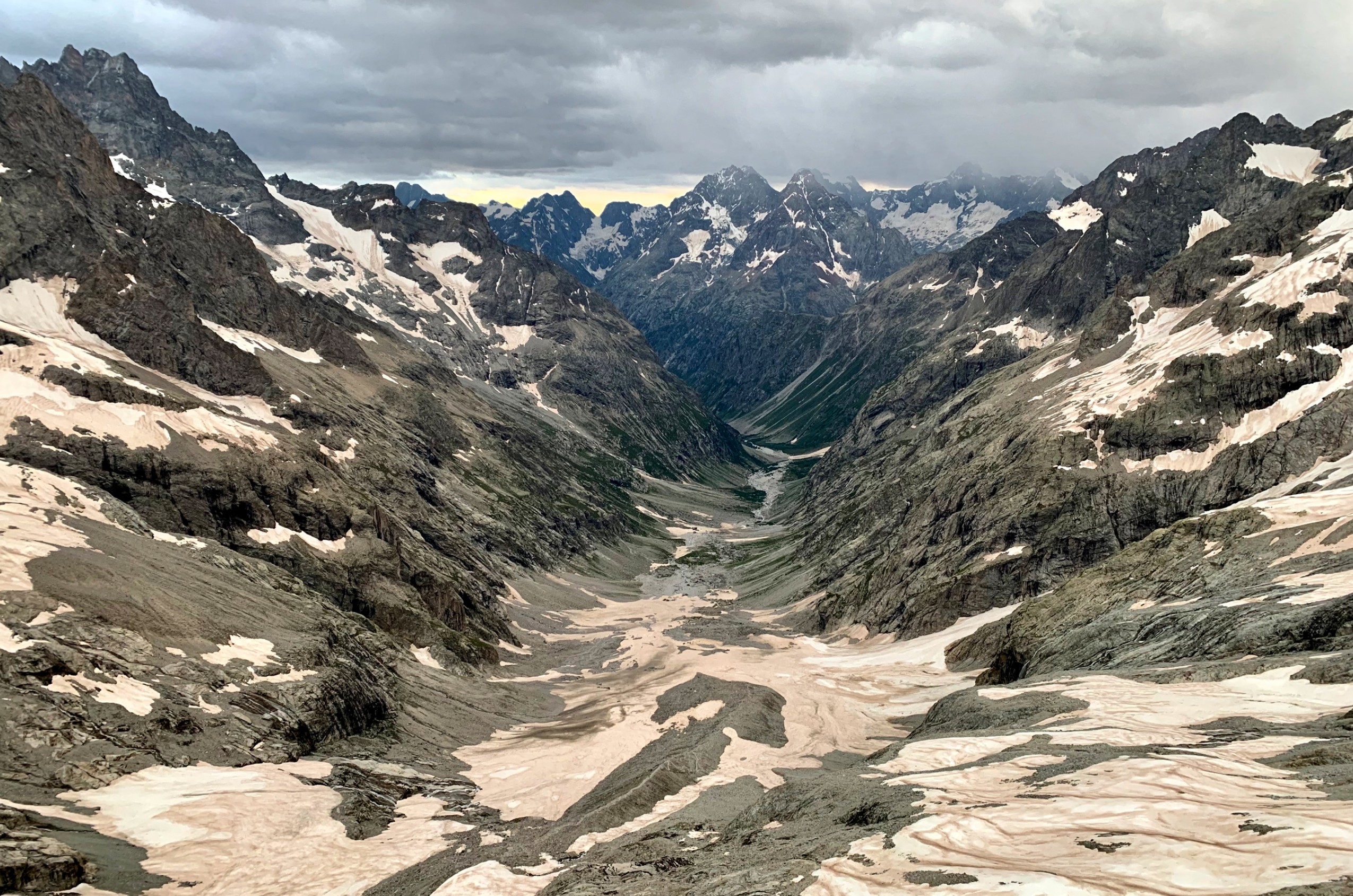 - Route : du Doigt de Dieu (3973 m) à la Vallée de la Romanche (1450 m) via le Refuge de l’Aigle (3450 m)