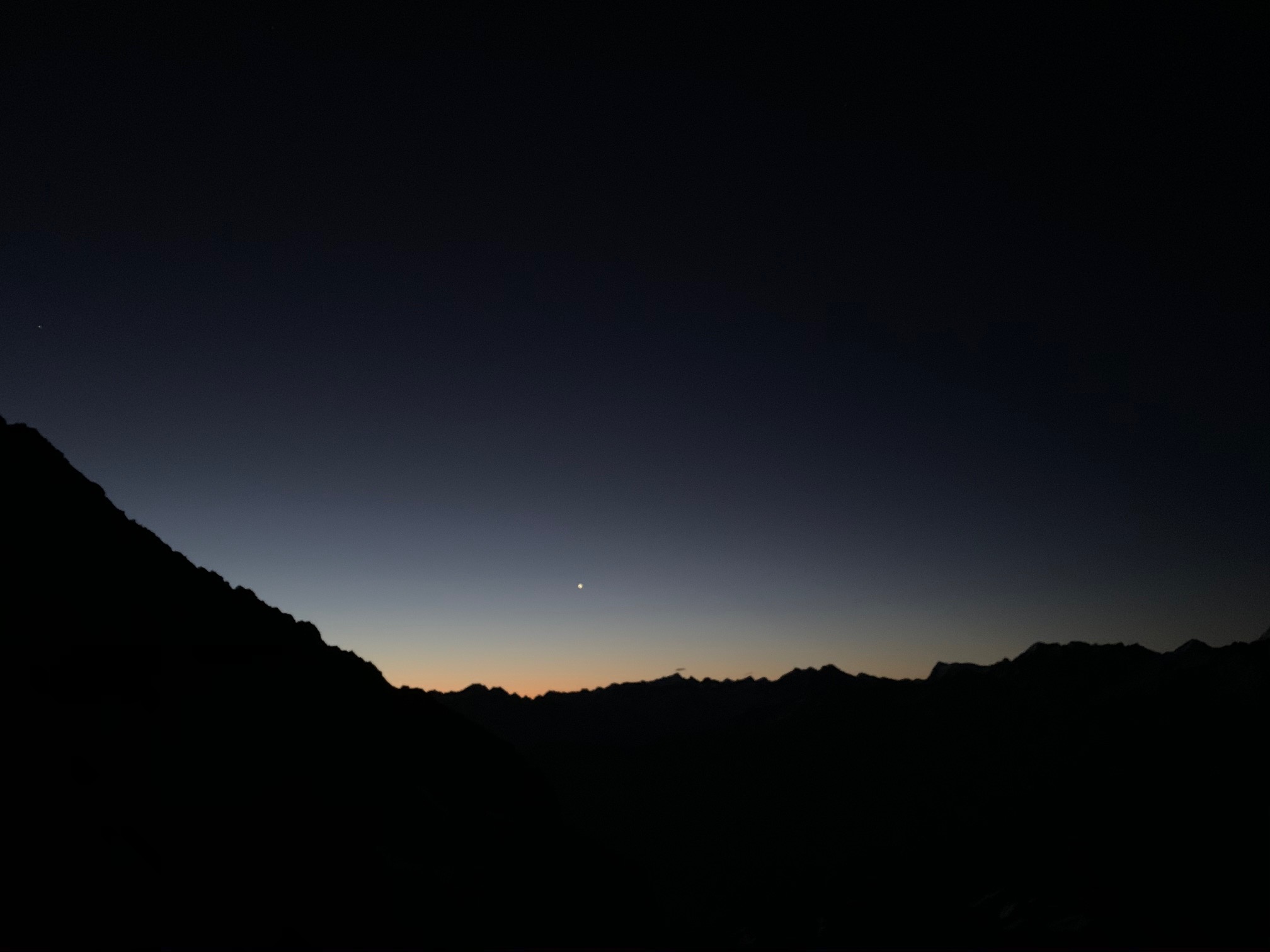 3h40 réveil cruel. 4h petit déjeuner frugal. 5h départ tardif, notre signature. Dans tous les cas, peu importe le temps. À la montagne, comme pendant le confinement, on ne vit qu’en dehors du temps.