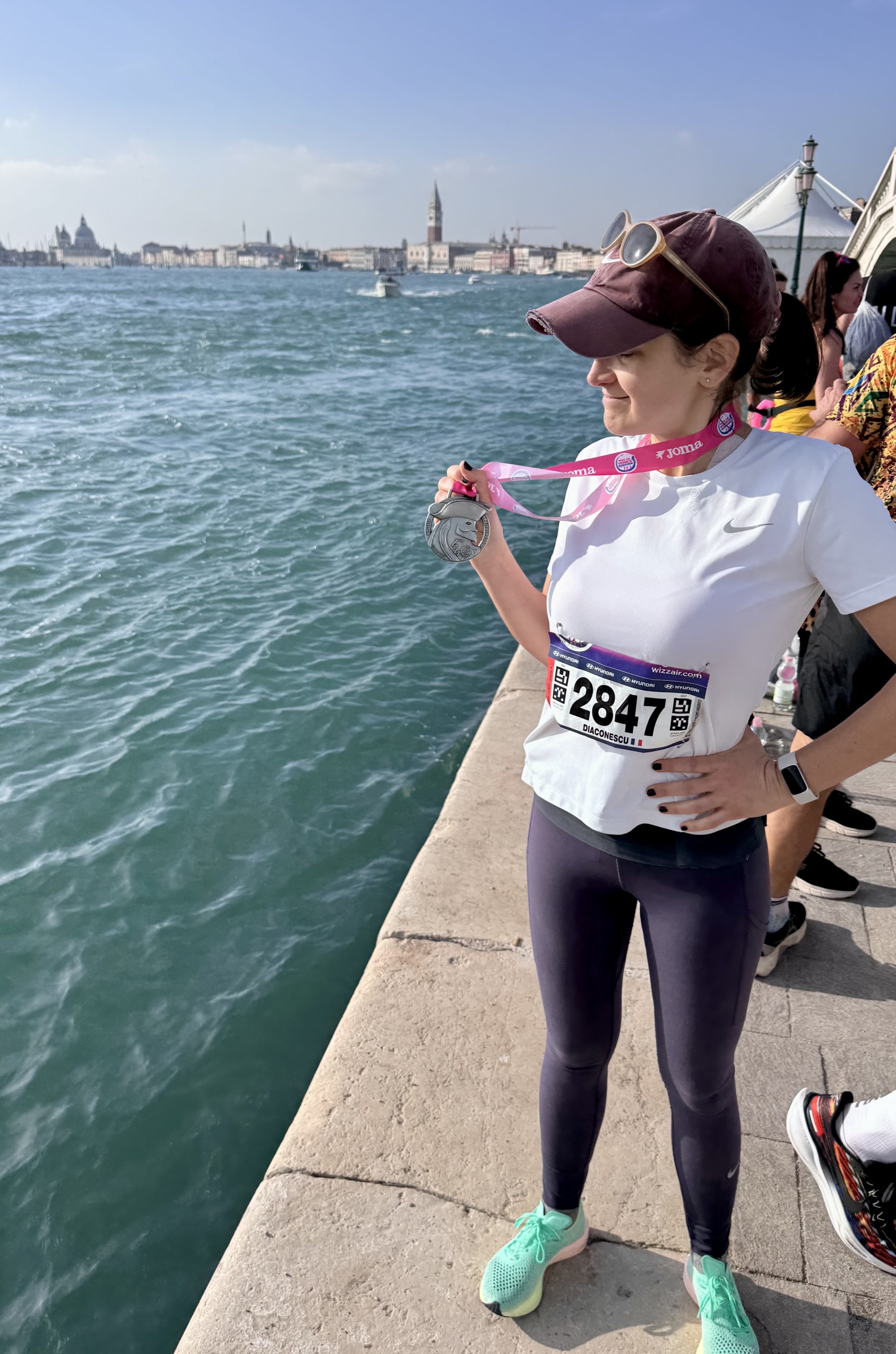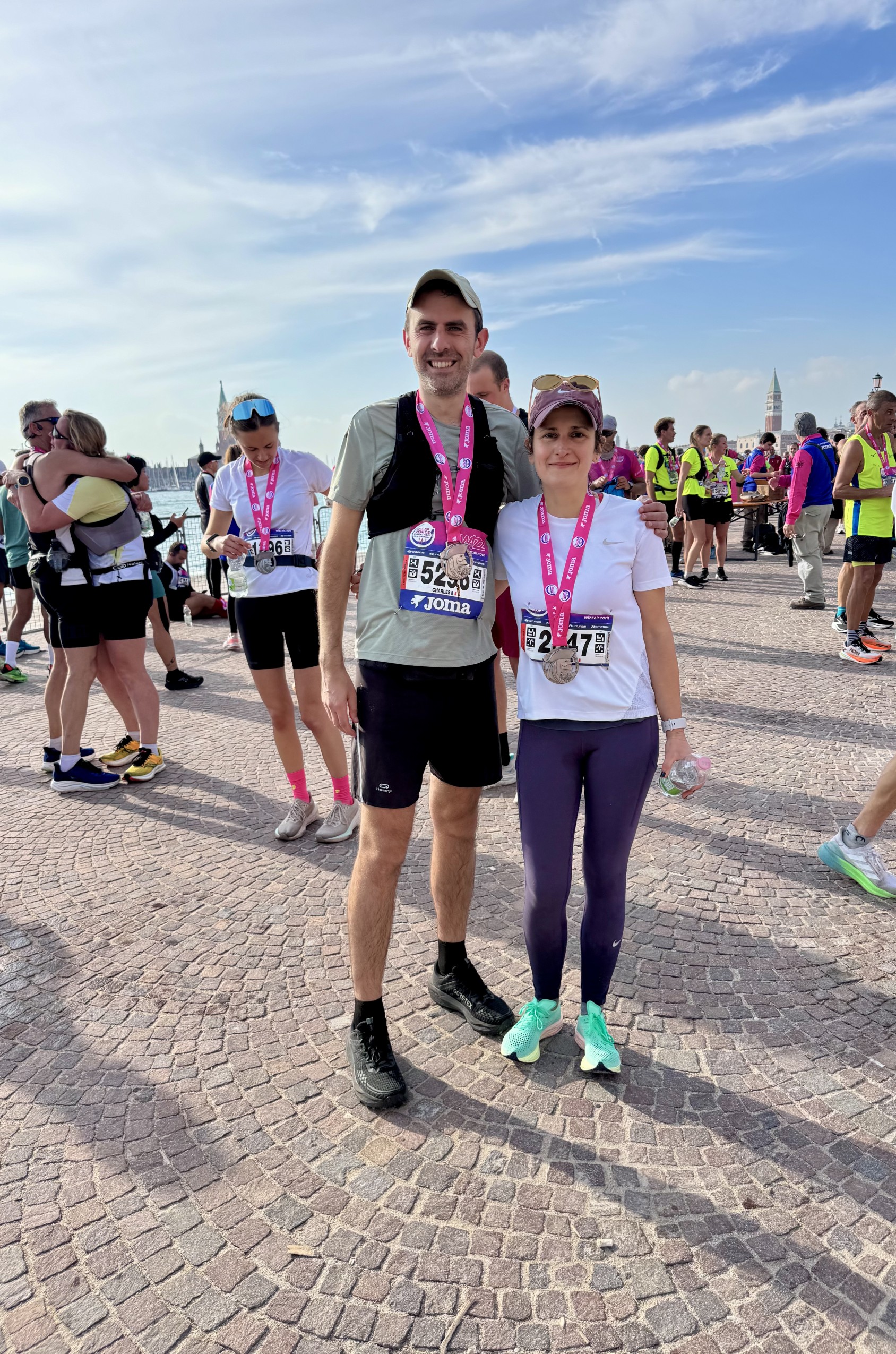 Km 10, Mira. Les cohortes se raréfient petit à petit. On longe le canal de la Brenta, avec ses villas palladiennes, des fanfares, des enfants qui tendent les mains pour faire des checks. Les « Forza ! Bravo ! Sempre duri ! » surgissent de partout. Les groupes de musique font vibrer l’asphalte. Des sourires, des décibels et des foulées déphasées de cette légion de coureurs. Portée par l’euphorie collective, j’ai l’impression d’être légère. Je ne cours pas. Je flotte sur une vague qui glisse tout seule vers la lagune.