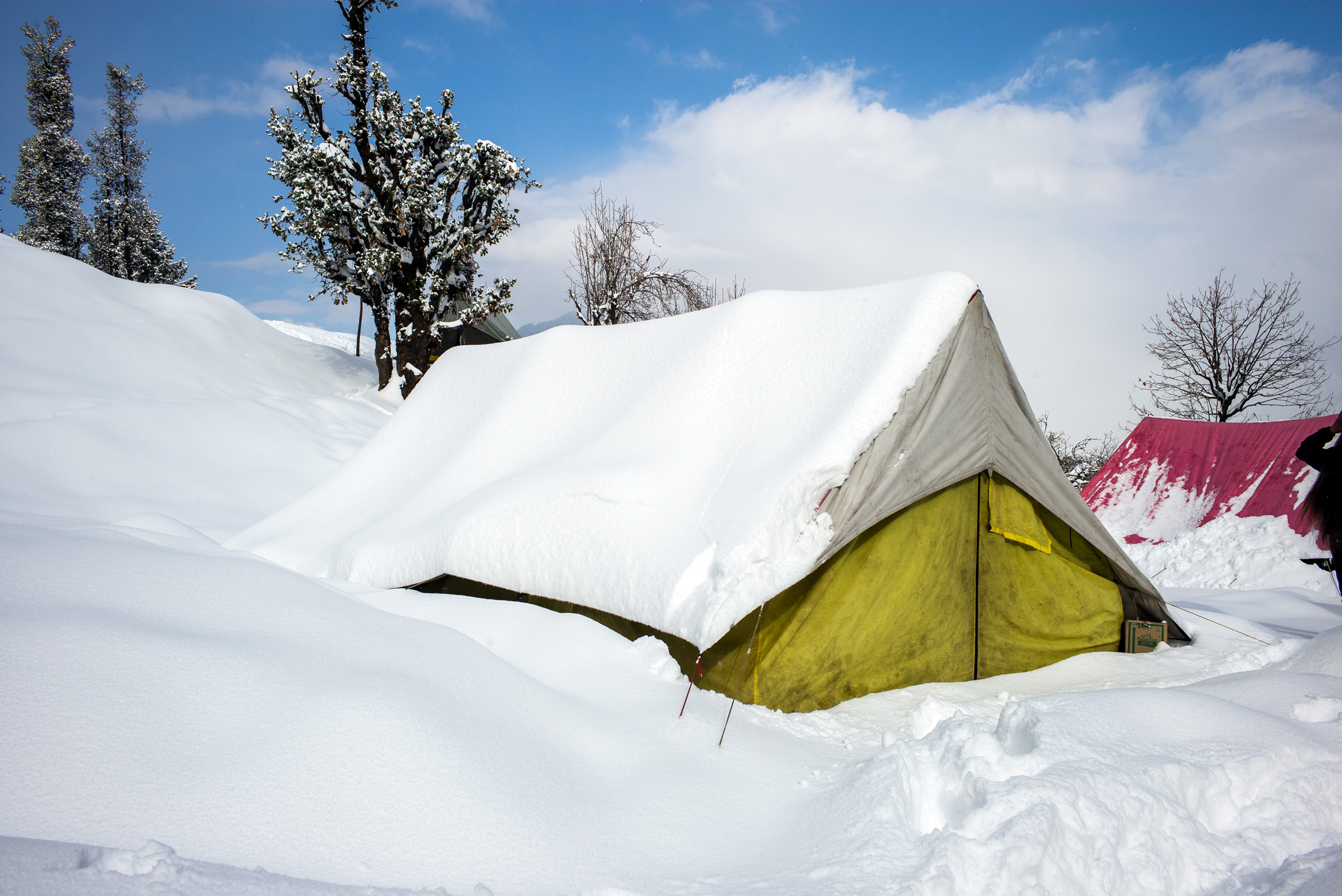 Le troisième matin, on part vers le camp de base, à 4,5 km de Jadu Ka Talab. Là-haut, la neige est encore plus épaisse et j'ai le sentiment de redevenir enfant, quand les congères dépassaient souvent le niveau des hanches. C'est pareil au camp de base et c'est juste magique ! Il fait froid et c'est une vraie aventure de se brosser les dents dehors, d'aller aux toilettes ou de parcourir les 50m entre la tente et la cabane improvisée de la cuisine. Mais, comme on le savait déjà, chaque repas vaut vraiment le prix du froid, l'effort de mettre les chaussures froides et de se déplacer vers la cuisine… pour le chaï de 17 heures, Pankaj nous fait le plaisir de nous rapporter des petites gourmandises dans la tente.