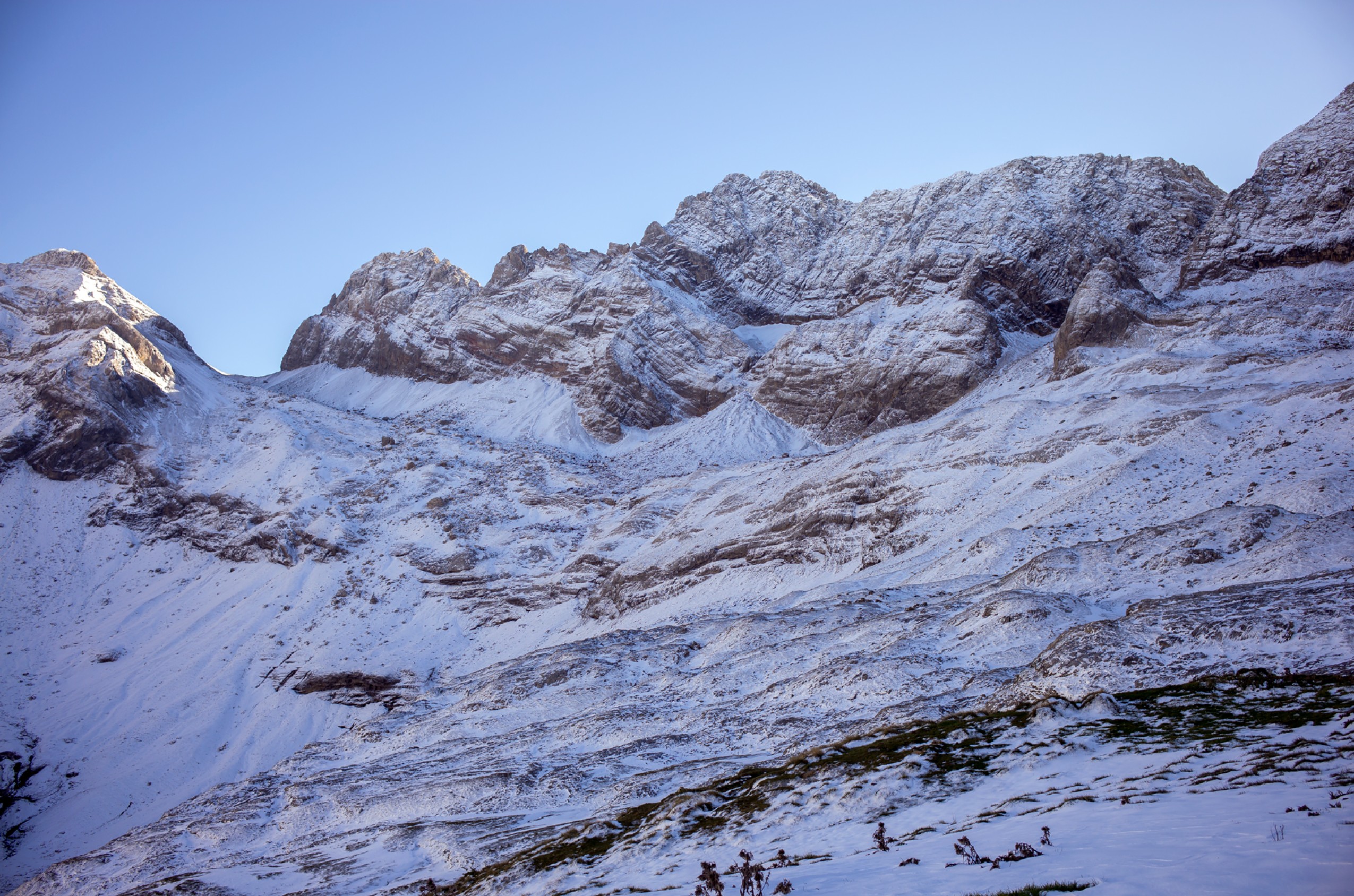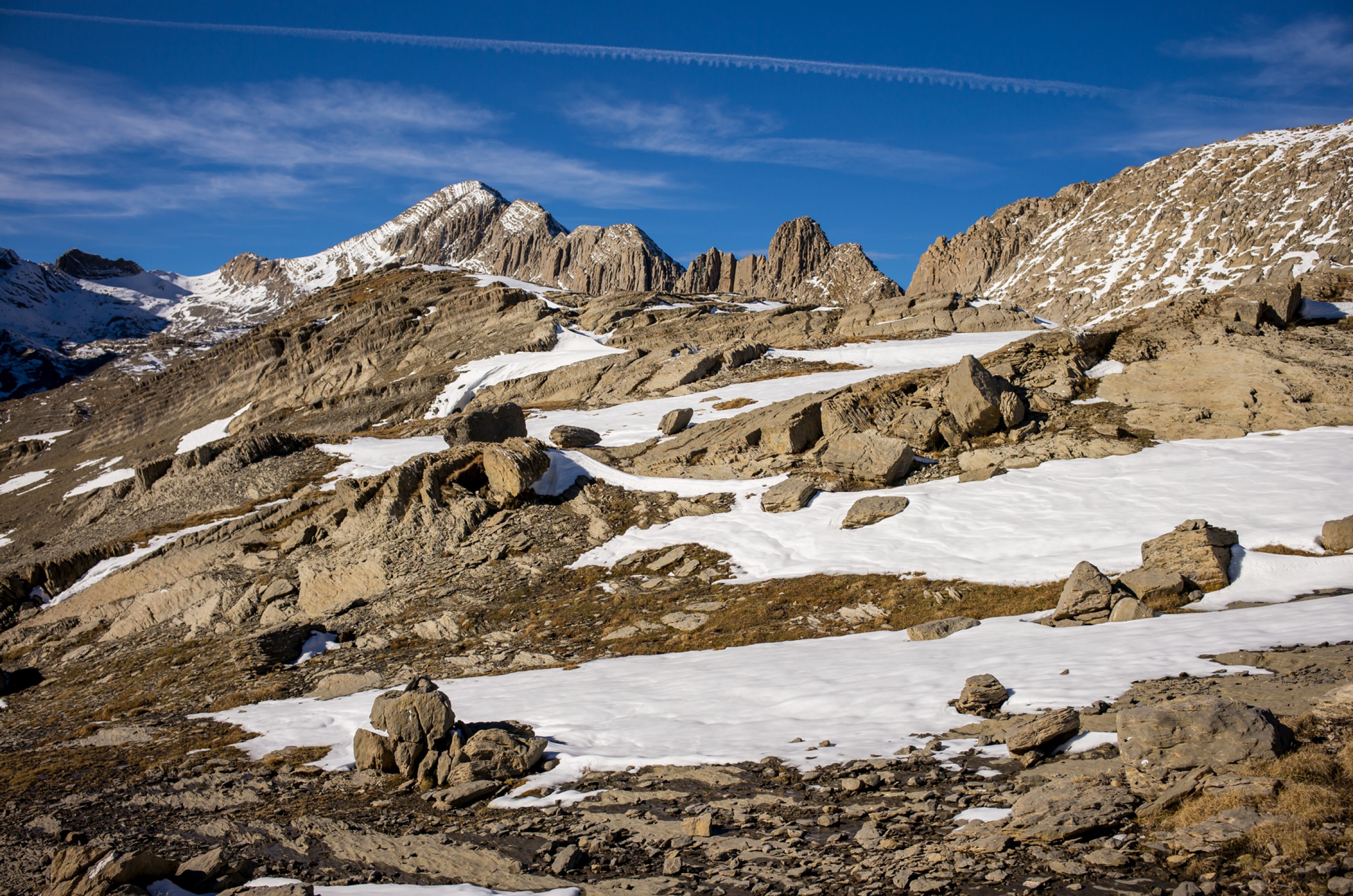 Le jour se lève. Le retour est long, comme tous les retours, et les sacs sont encore trop lourds, comme tous les sacs, malgré les soupes et les conserves qu’on a laissées au refuge en signe de reconnaissance pour le bois, le charbon et l'accueil. Bien que nous n’ayons pas osé l’ascension du Mont Perdu cette fois-ci, intimidés par le verglas et les conditions hivernales, nous ne sommes pas déçus. Ces deux jours ont été un grand moment de grâce : nous avons découvert le feu et l’eau chaude, nous avons voyagé loin à travers les ères géologiques, seuls dans le temps et l’espace.